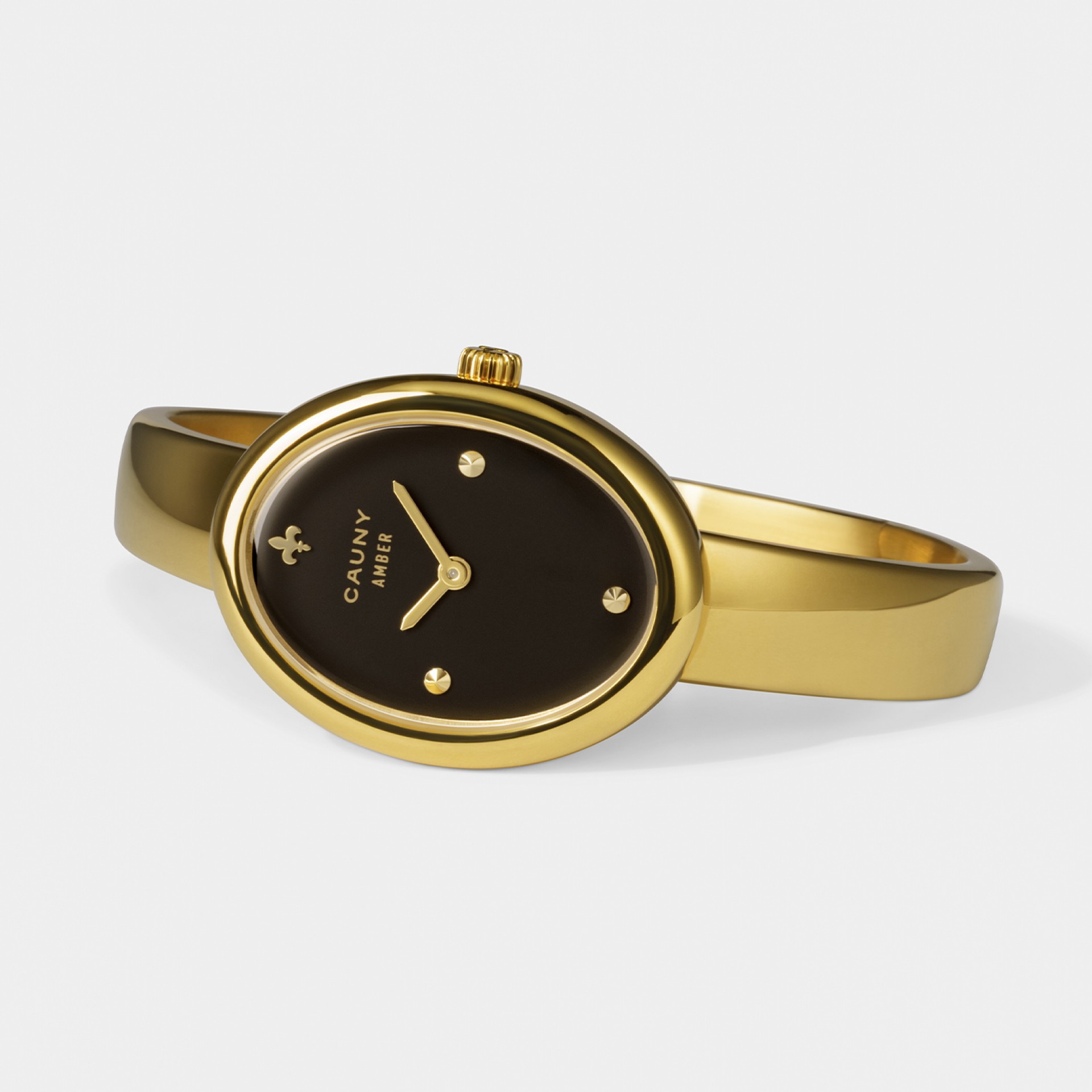 Género: Mulher Funções: Hora Movimento: Quartzo Resistência: 3 ATM Tipo Mostrador: Analógico Cor Mostrador:  Preto Cor Bracelete: Dourado Material Caixa: Aço Cor Caixa: Dourado Material Bracelete: Aço Dimensões da Caixa: 32 mm Garantia: 2 anos