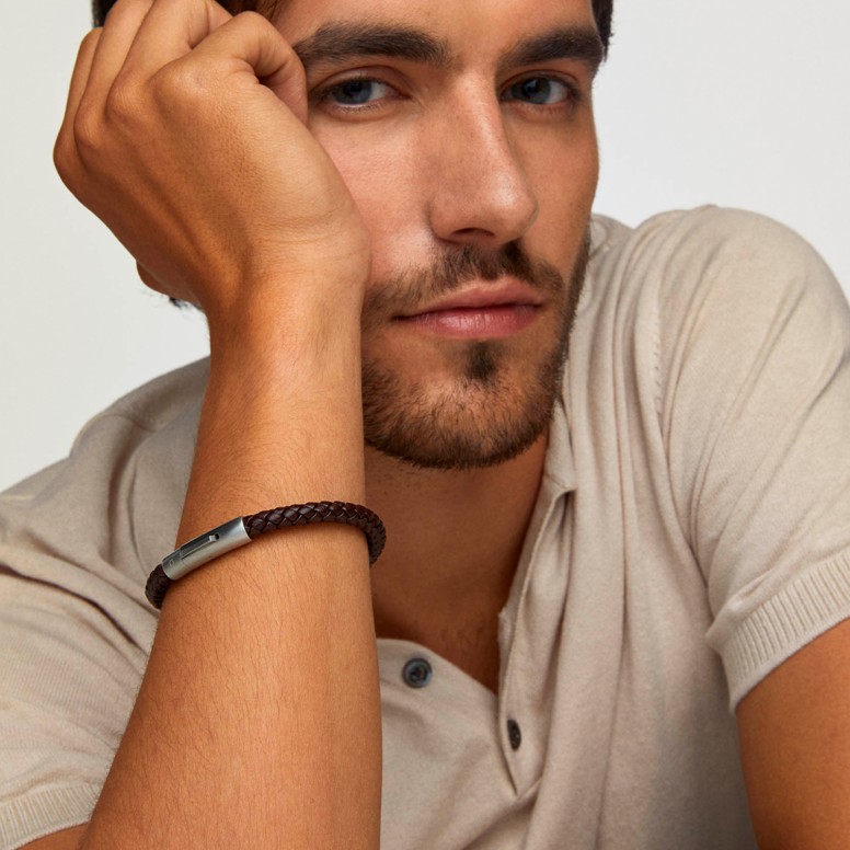 Género: Homem Jóia: Pulseira Material: Couro Cor: Castanho Medidas: 19 cm
