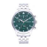 Género: Homem Funções: Data e Hora Movimento: Quartzo Resistência: 5ATM Tipo Mostrador: Analógico Cor Mostrador: Verde Cor Bracelete: Prateado Material caixa: Aço Cor Caixa: Prateado Material Bracelete: Aço Dimensões da Caixa: 43 mm Garantia: 2 anos