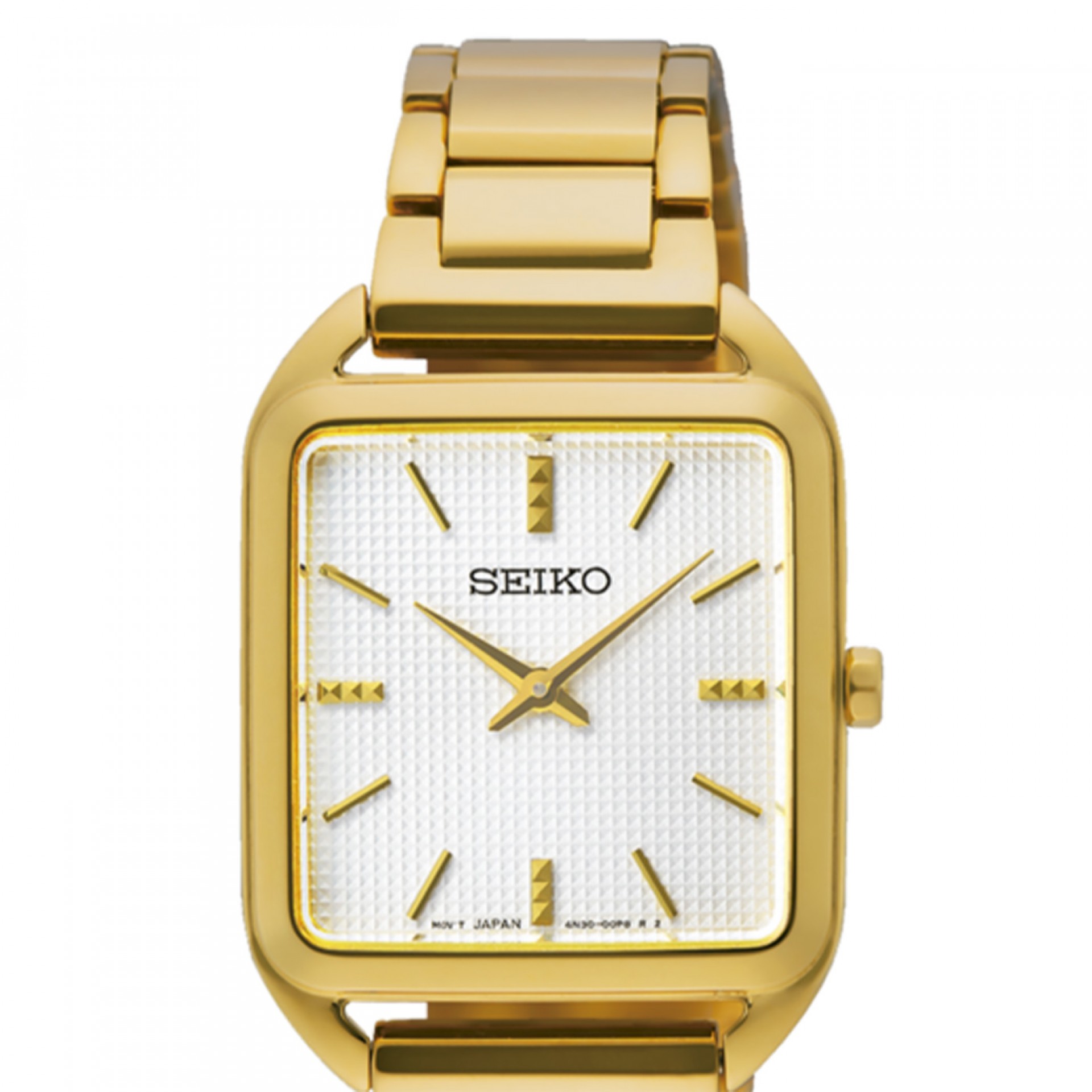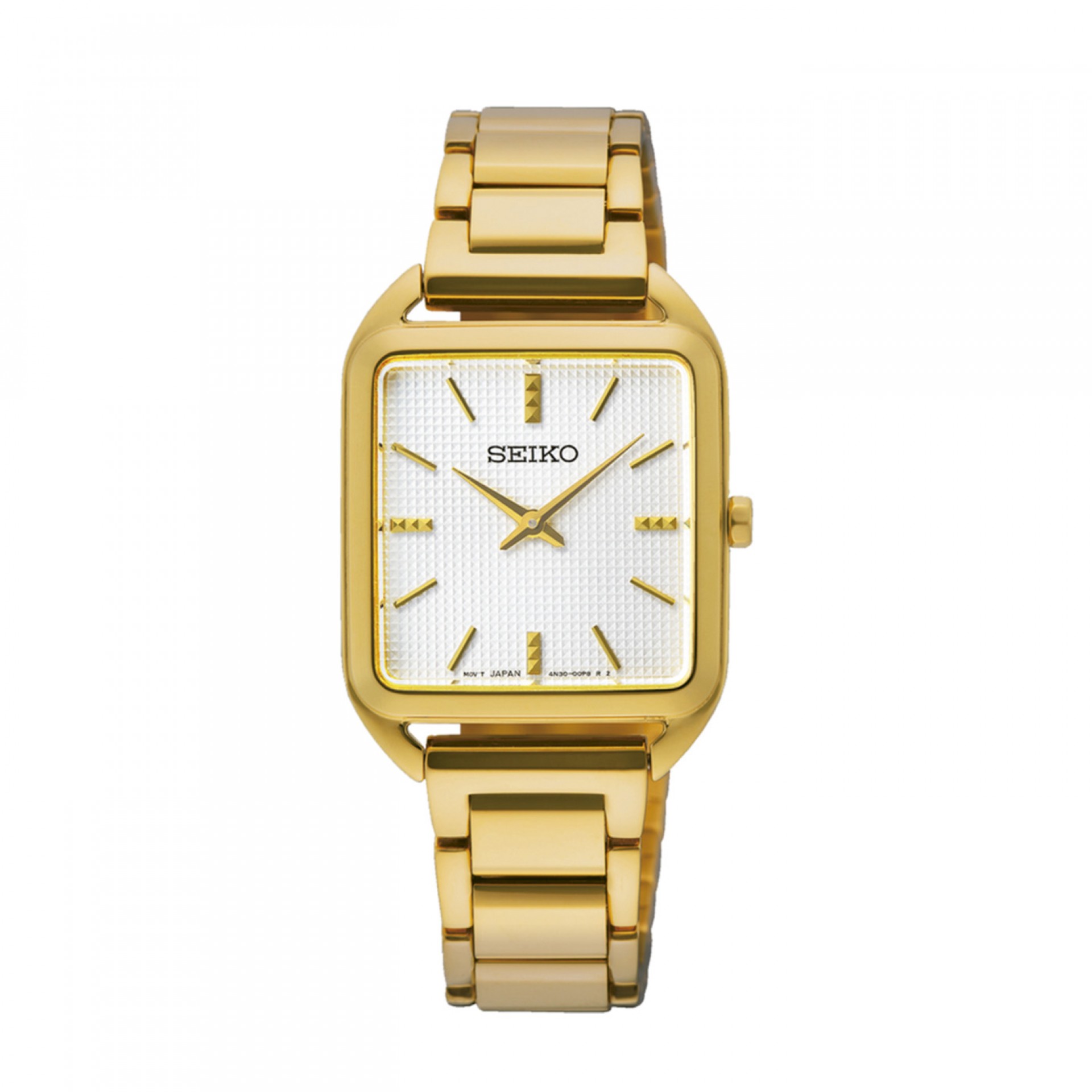 Género: Mulher Funções: Simples Movimento: Quartzo Resistência: 5 ATM Tipo Mostrador: Analógico Cor Mostrador: Branco Cor Bracelete: Dourado Material Caixa: Aço Cor Caixa: Dourado Material Bracelete: Aço Dimensões da Caixa: 26 mm Garantia: 2 anos